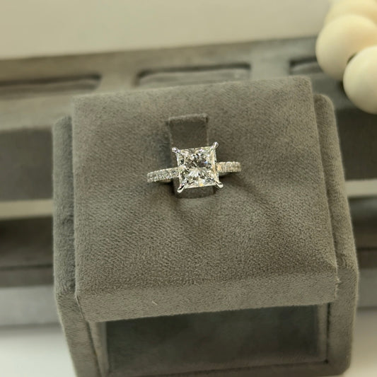 2.37 Carat Princess Lab Diamond Traditional Elegance Hidden Halo Ring
