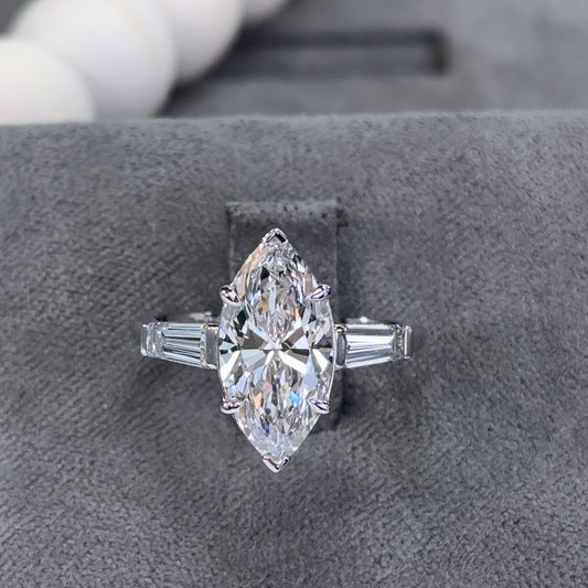 3.03 Carat Marquise Three-Stone Tapered Baguettes Lab Diamond Ring