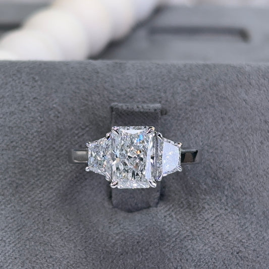 2.01 Carat Radiant Three-Stone Trapezoid Sidestone Lab Diamond Ring