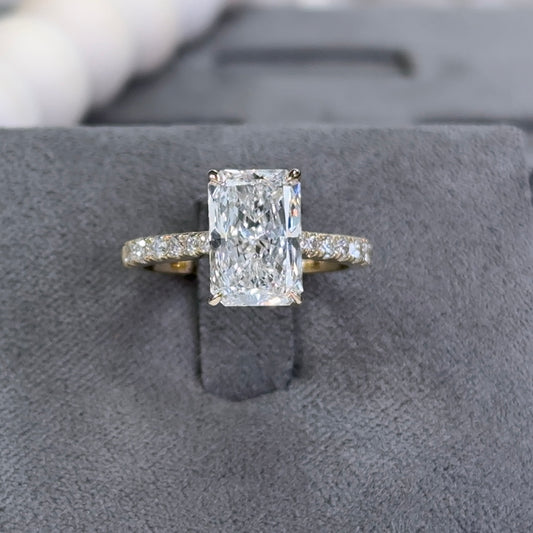 3.03 Carat Radiant Lab Diamond Hidden Halo Traditional Cathedral Ring
