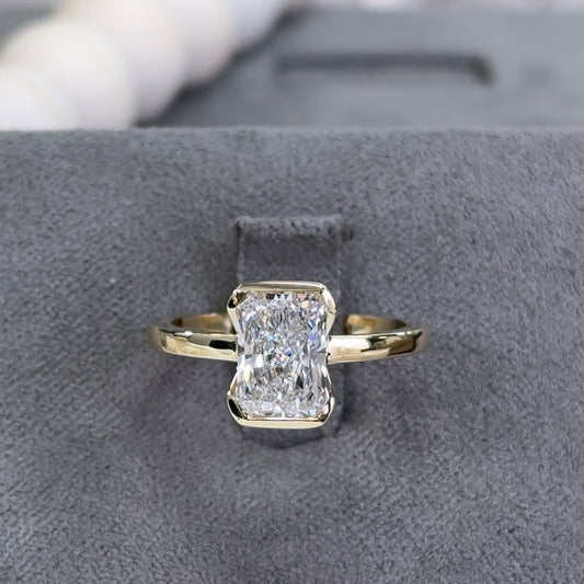 2.01 Carat Radiant Lab Diamond Half Bezel Solitaire Ring