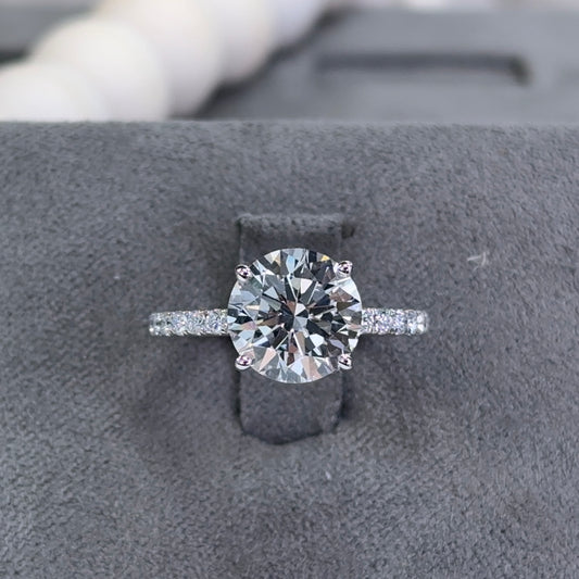 3.06 Traditional Round Lab Diamond Ring Low Hidden Halo