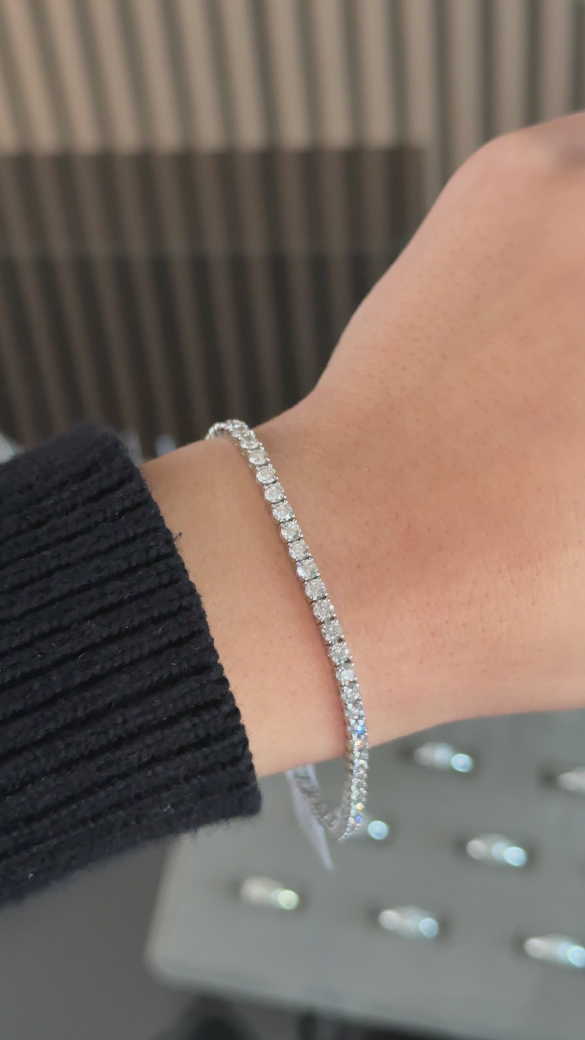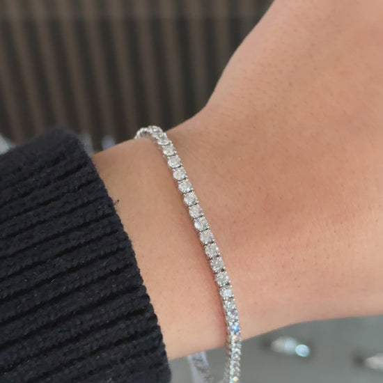 With an elegant design, 5.00 carats of E-F color VVS2-VS1 clarity lab round diamonds, and 2.75mm wide, EGL certified, this bracelet is one of a kind. Hand-set 14kt white gold is secure, it is the perfect addition to any jewelry collection. This bracelet is 7 inches long and can be resized.
