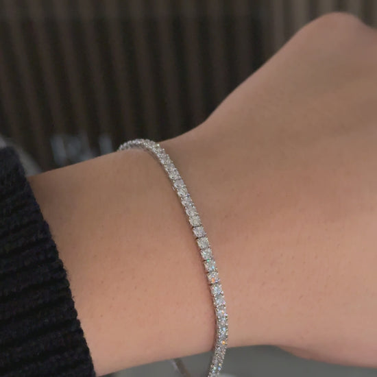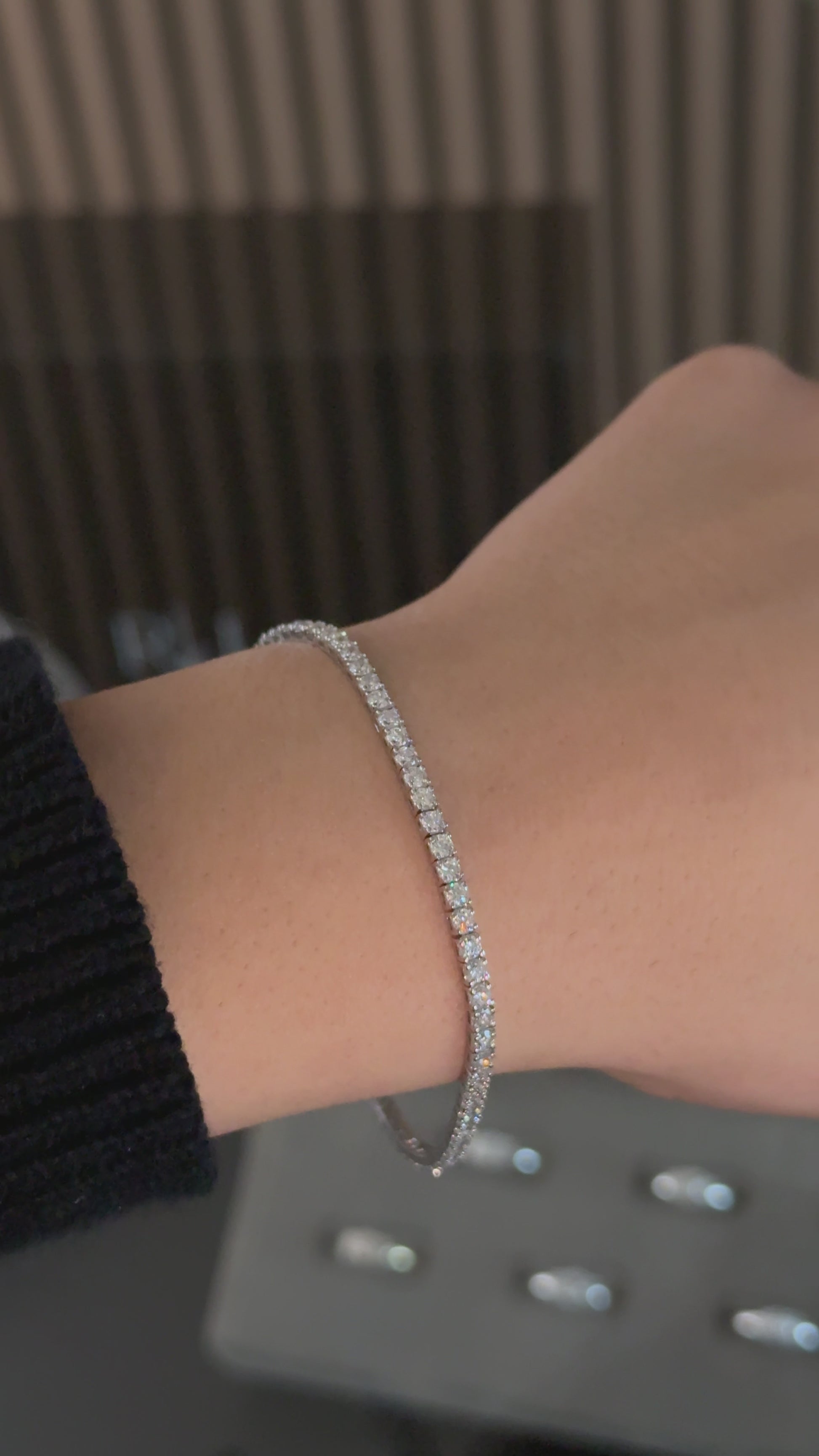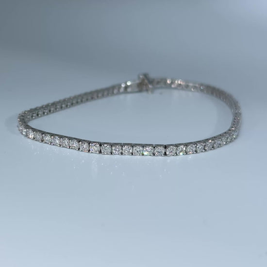 With an elegant design, 3.03 carats of D-E color, VVS2+ clarity round lab diamonds. This style is the perfect addition to any jewelry collection. This bracelet is 7 inches long and can be resized. This is certified by EGL.