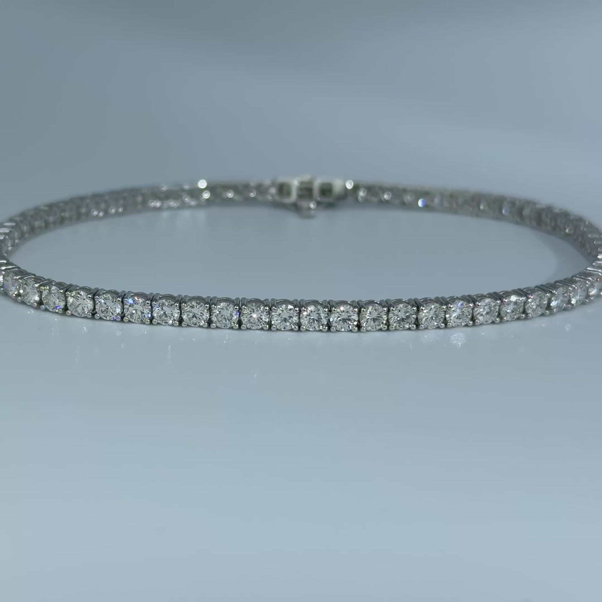 With an elegant design, 5.00 carats of E-F color VVS2-VS1 clarity lab round diamonds, and 2.75mm wide, EGL certified, this bracelet is one of a kind. Hand-set 14kt white gold is secure, it is the perfect addition to any jewelry collection. This bracelet is 7 inches long and can be sized down.