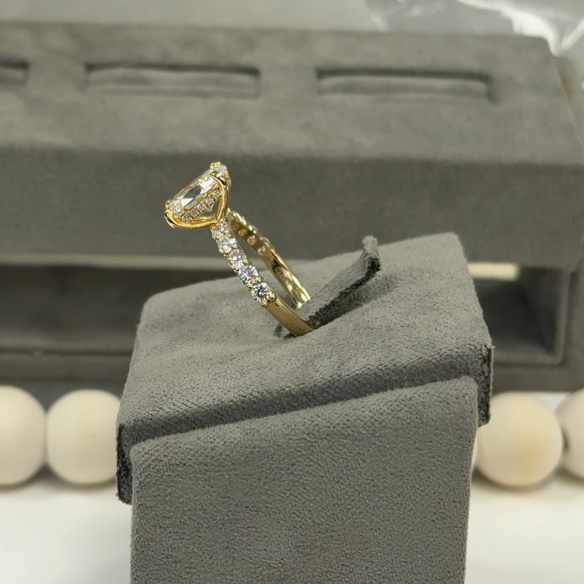 2.01 Carat Oval Lab Diamond Traditional 2.7mm Hidden Halo Ring