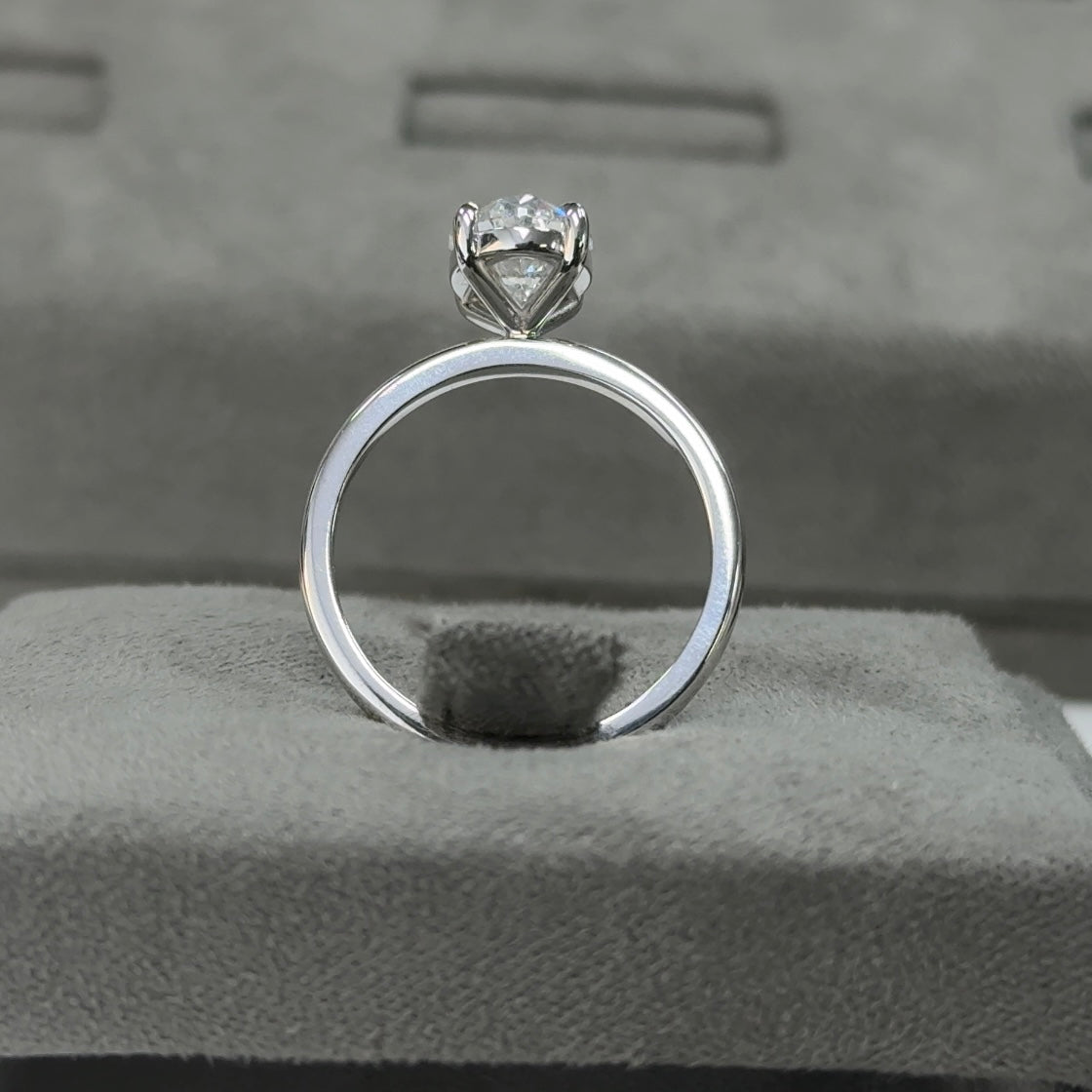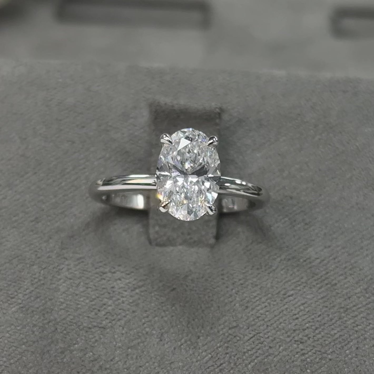 This ring showcases a 2.02 carat oval cut lab-grown diamond, graded D color and VVS1 clarity, and certified by IGI. The oval cut’s elongated shape and brilliant faceting create exceptional sparkle with a refined, graceful silhouette.