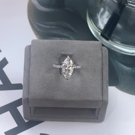 3.02 Carat Marquise Lab Diamond Traditional Elegance Hidden Halo Ring