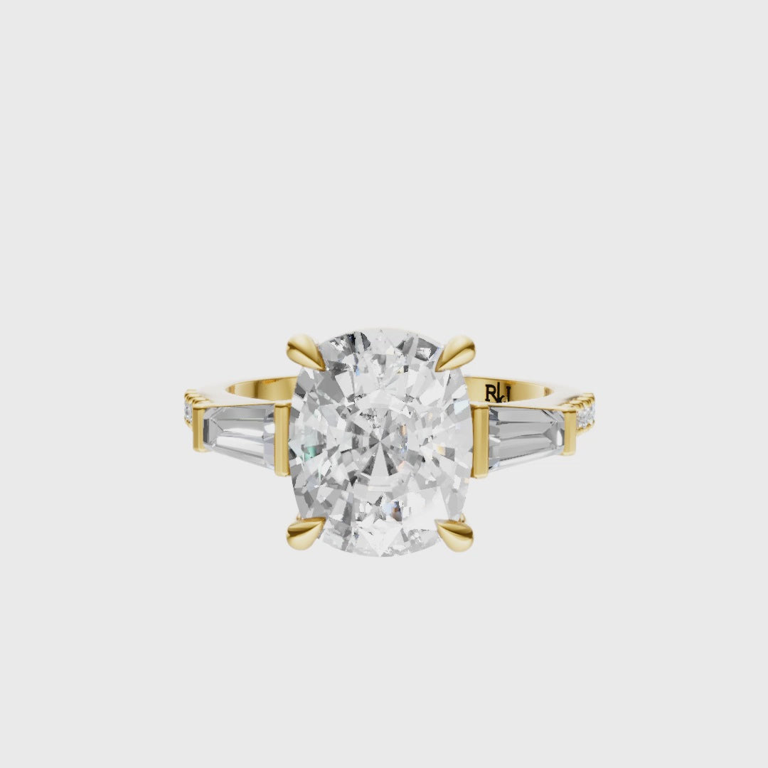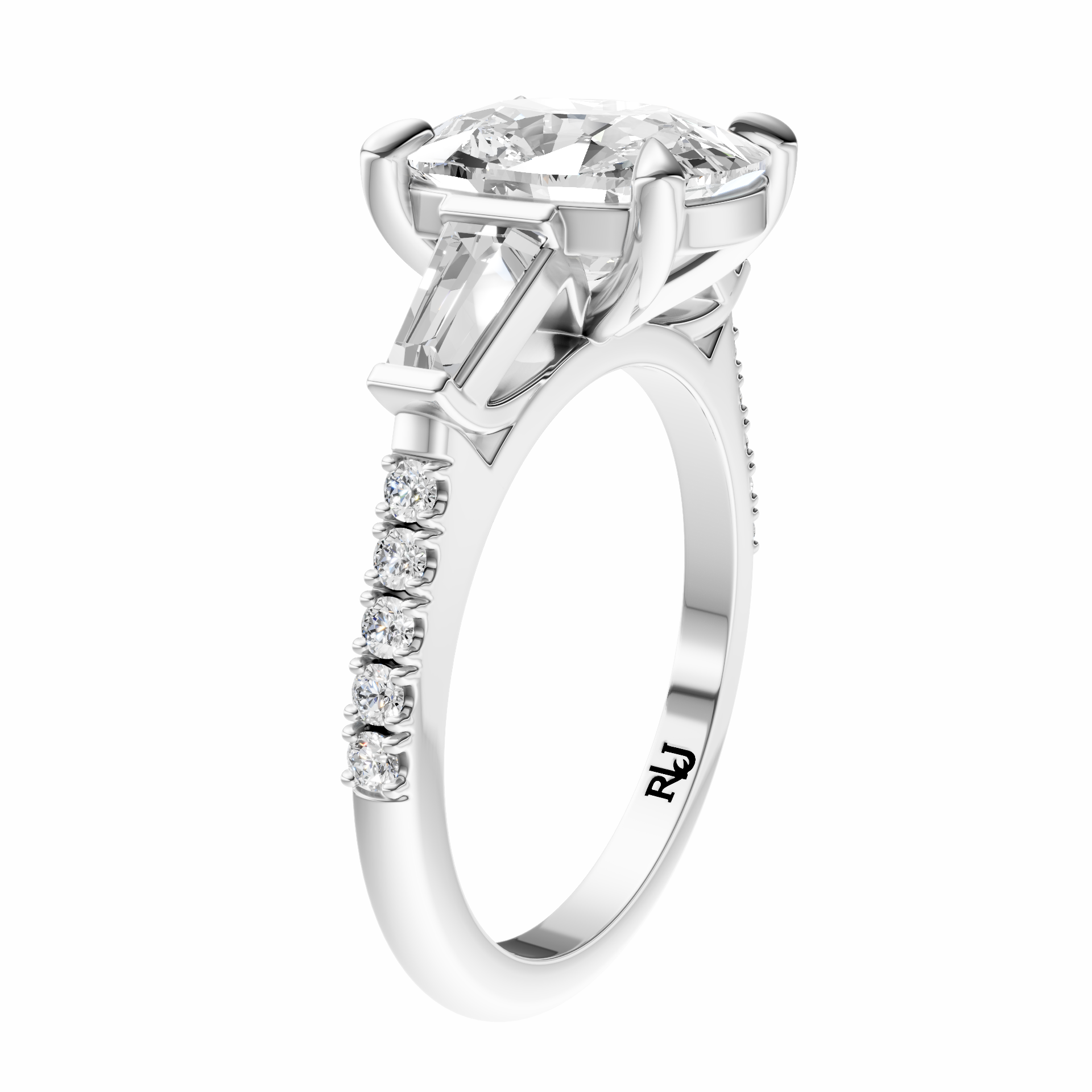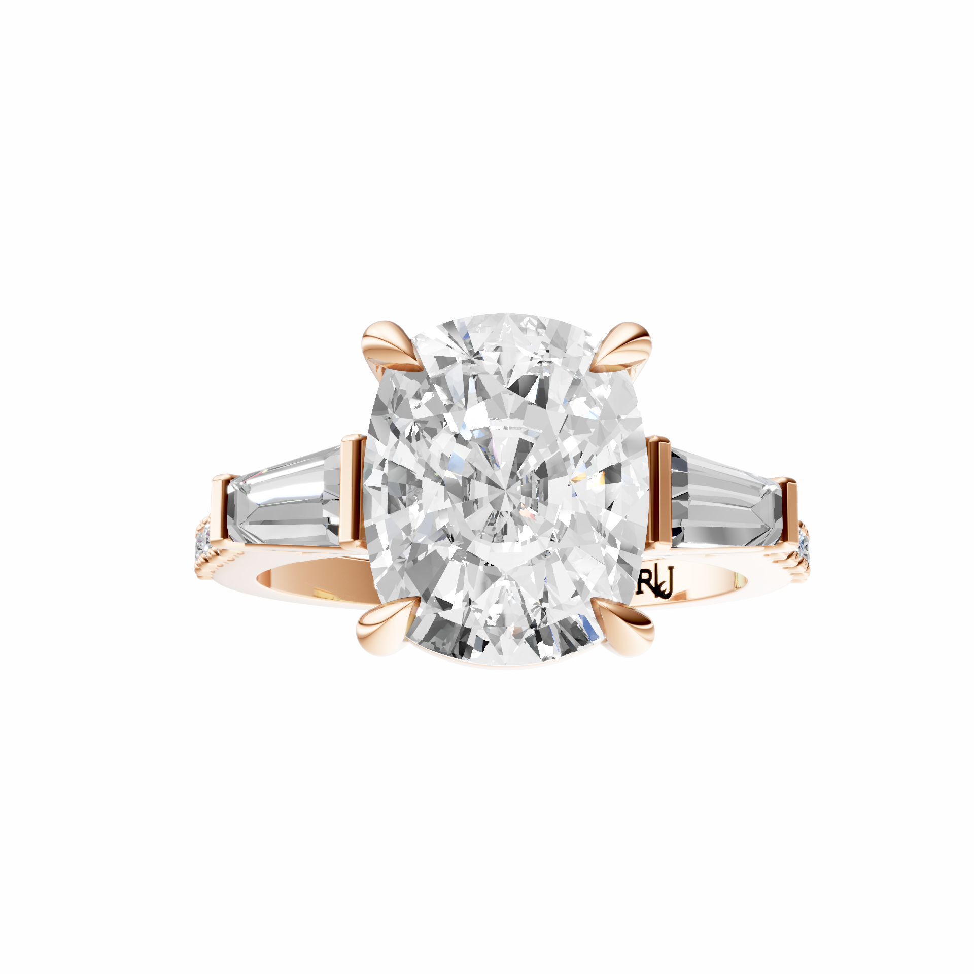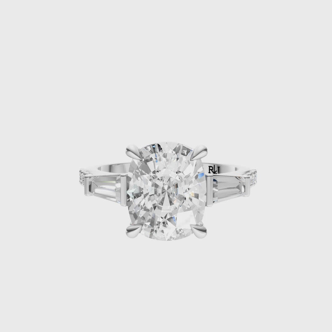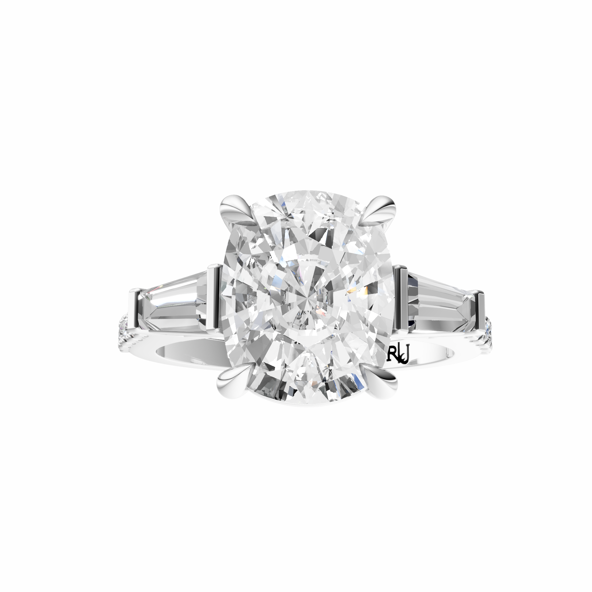 Cushion Accented Three Stone Tapered Baguettes Setting