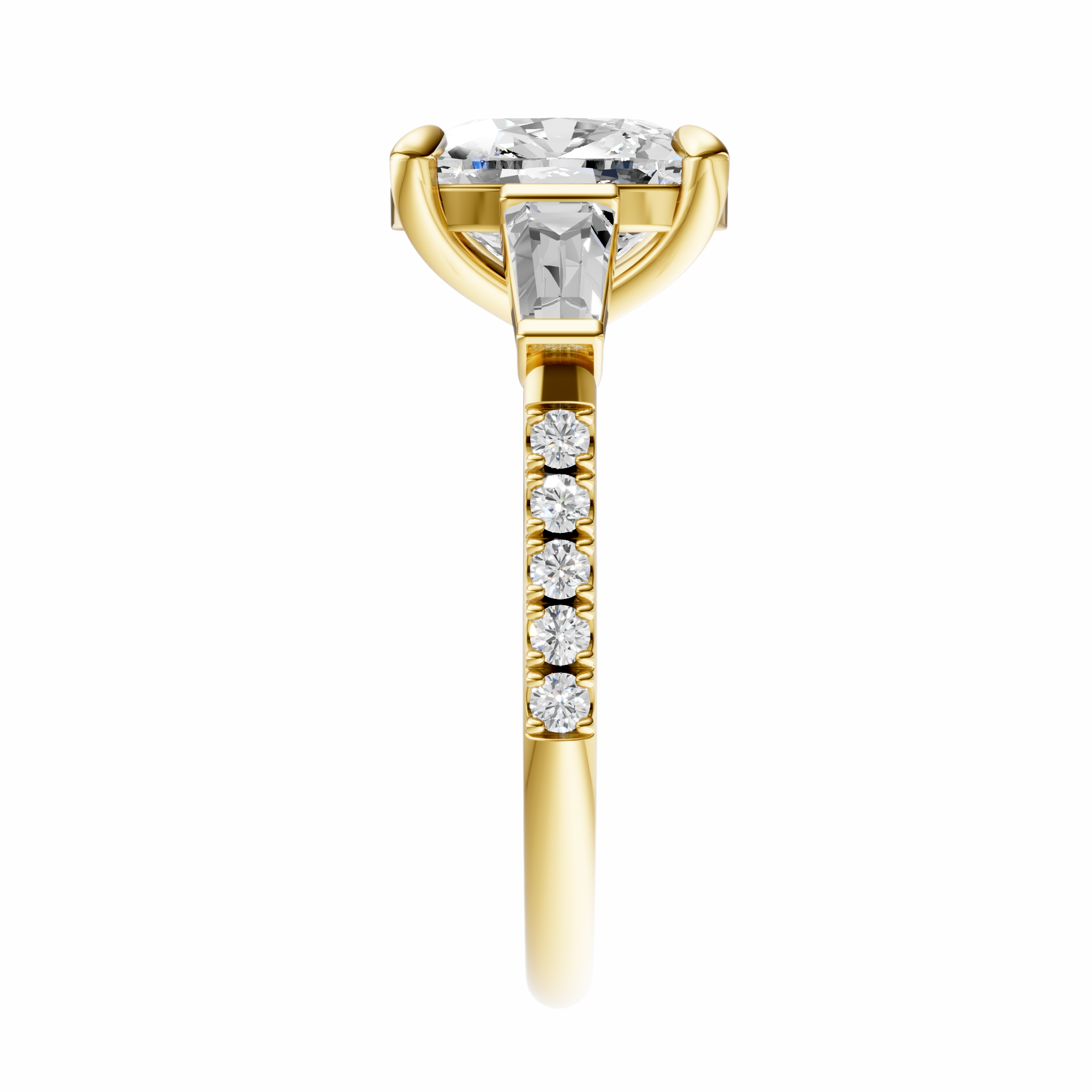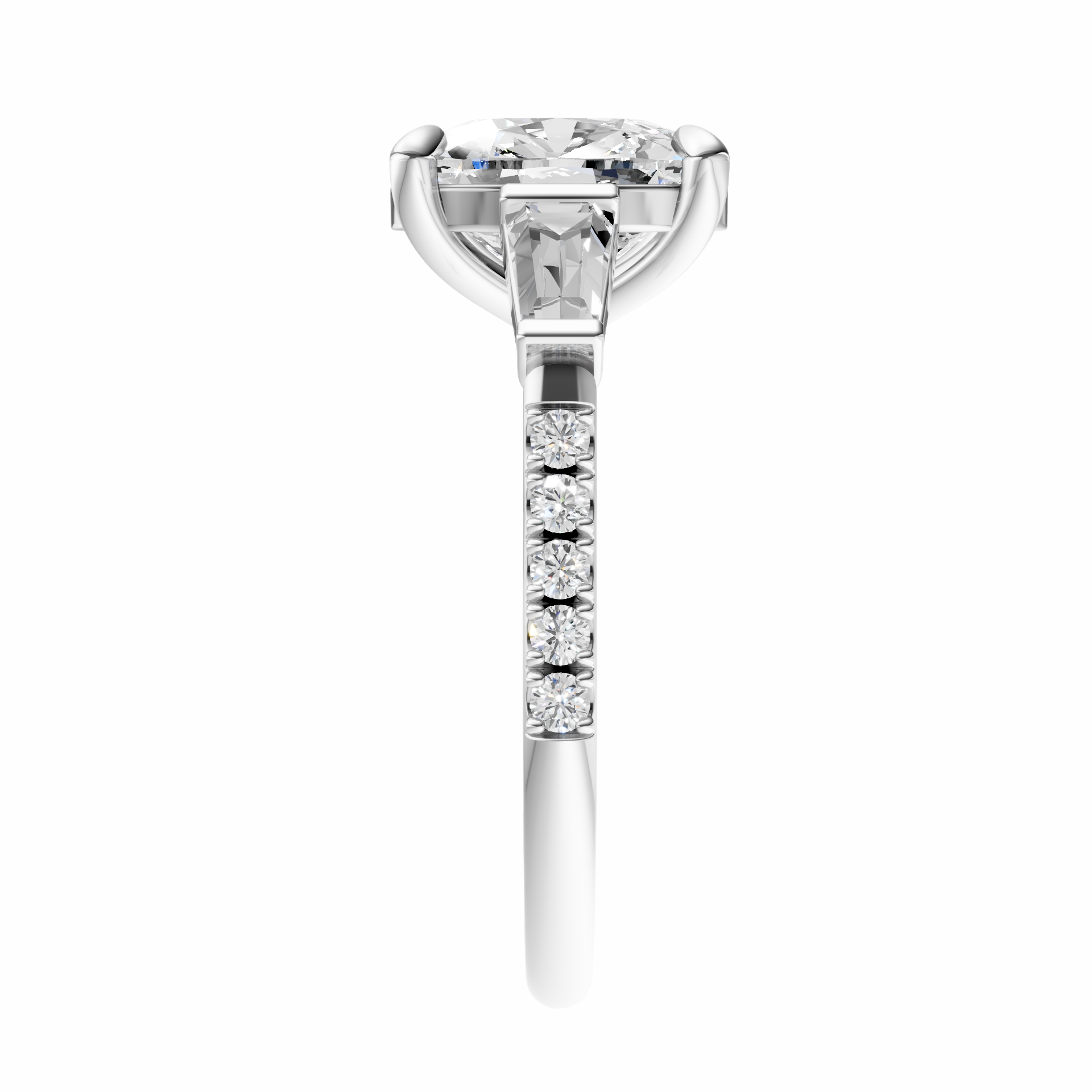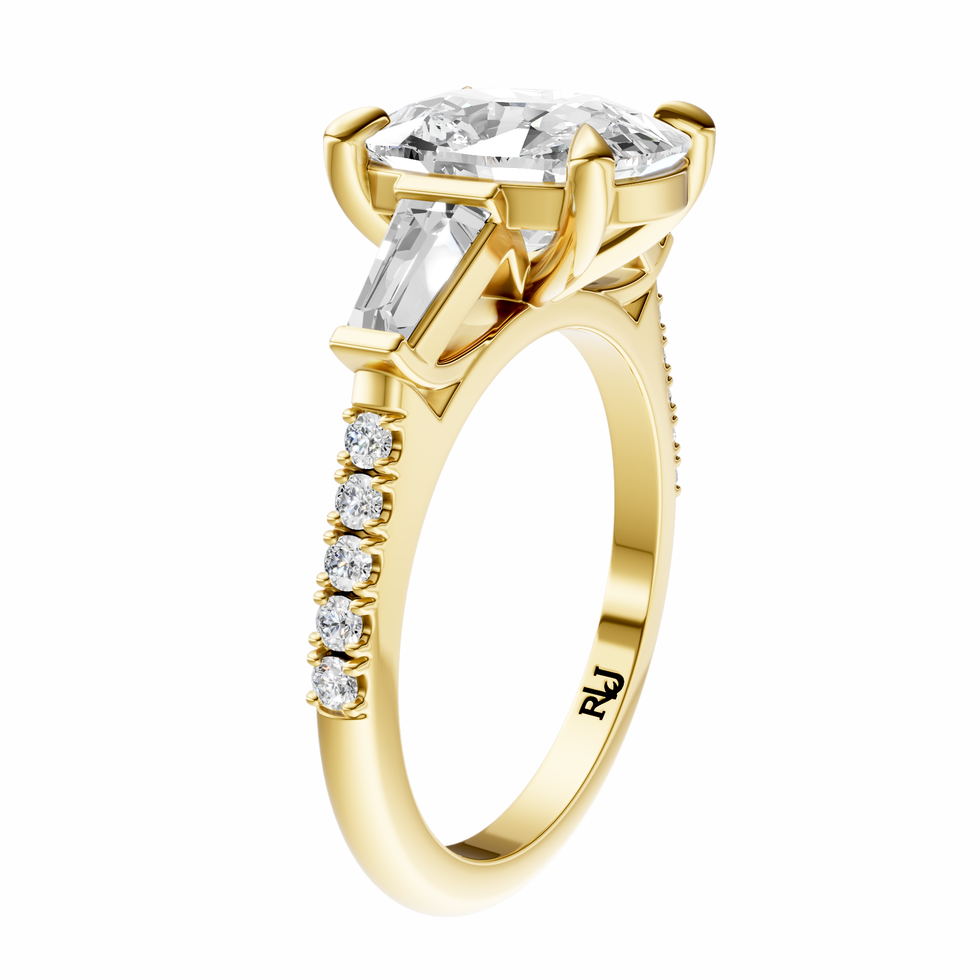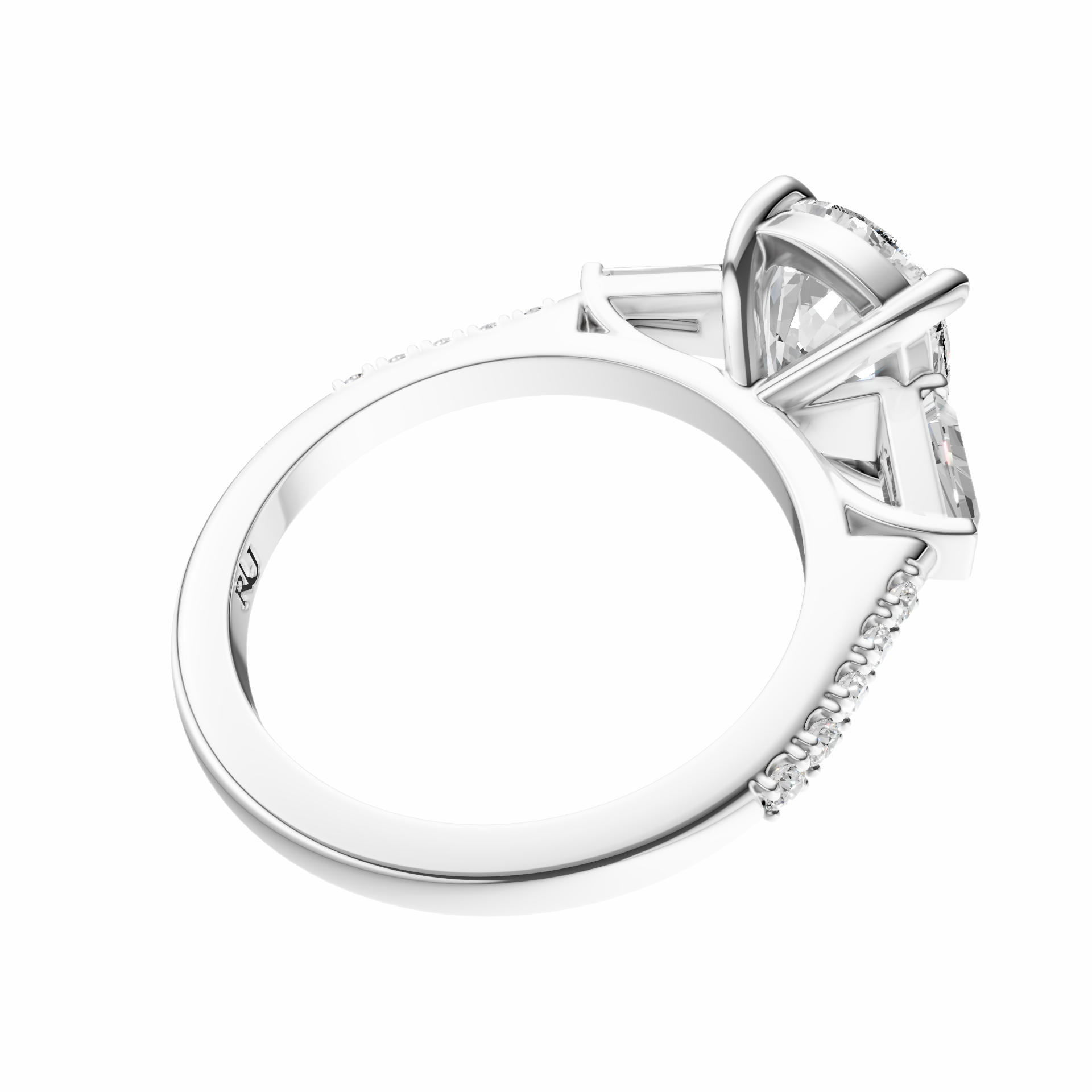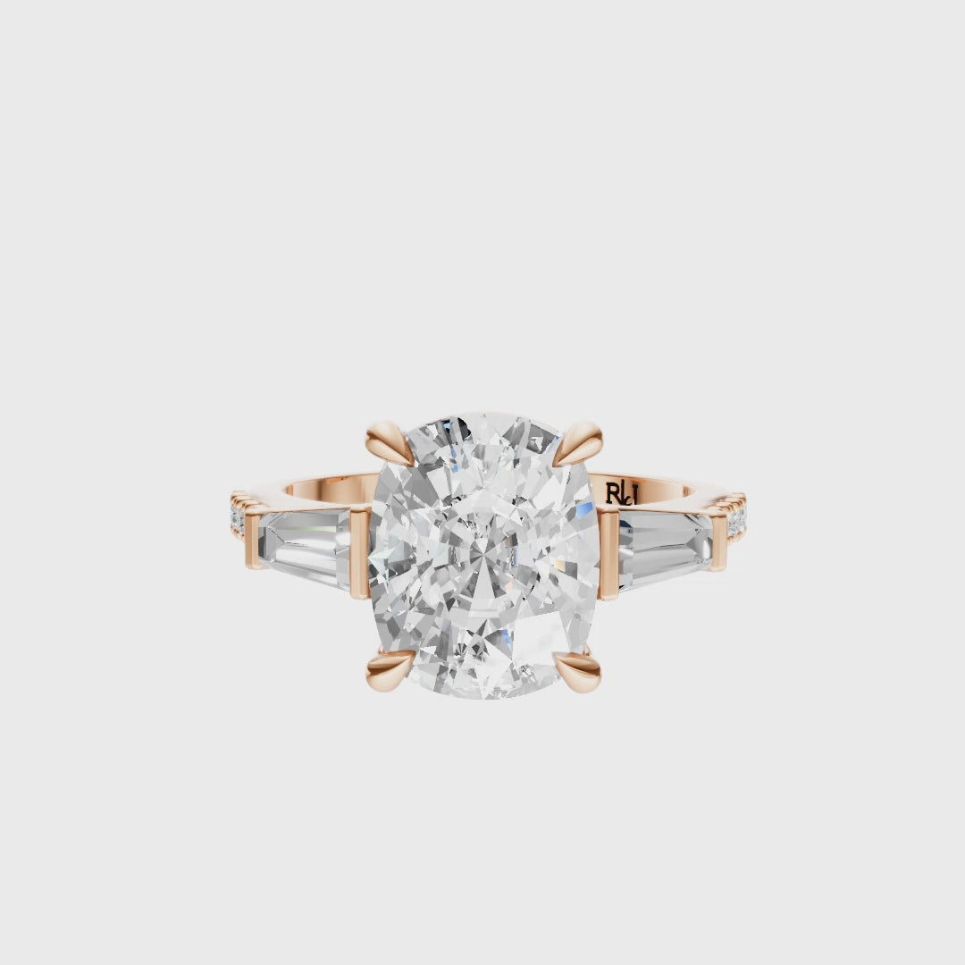 Cushion Accented Three Stone Tapered Baguettes Setting