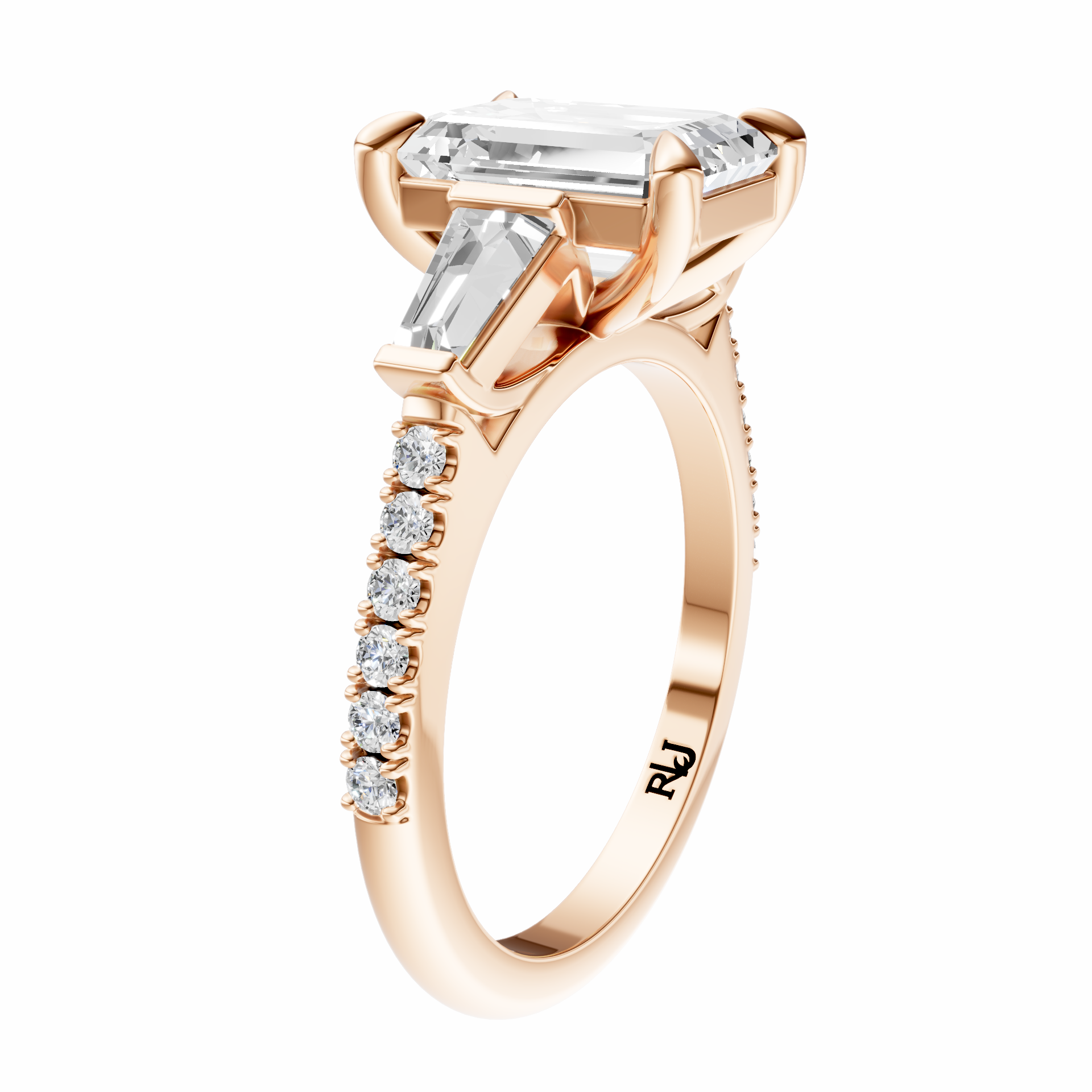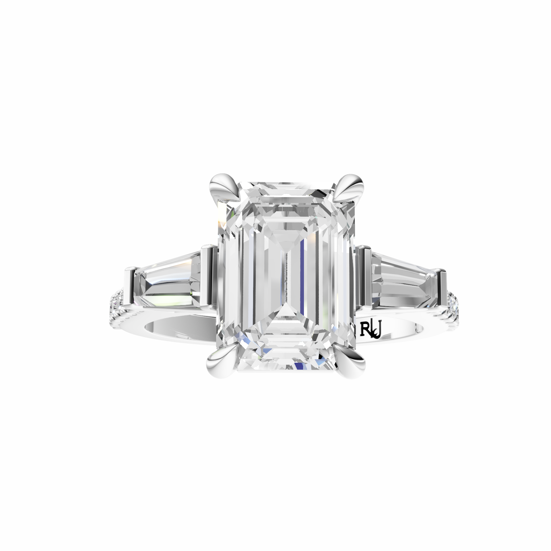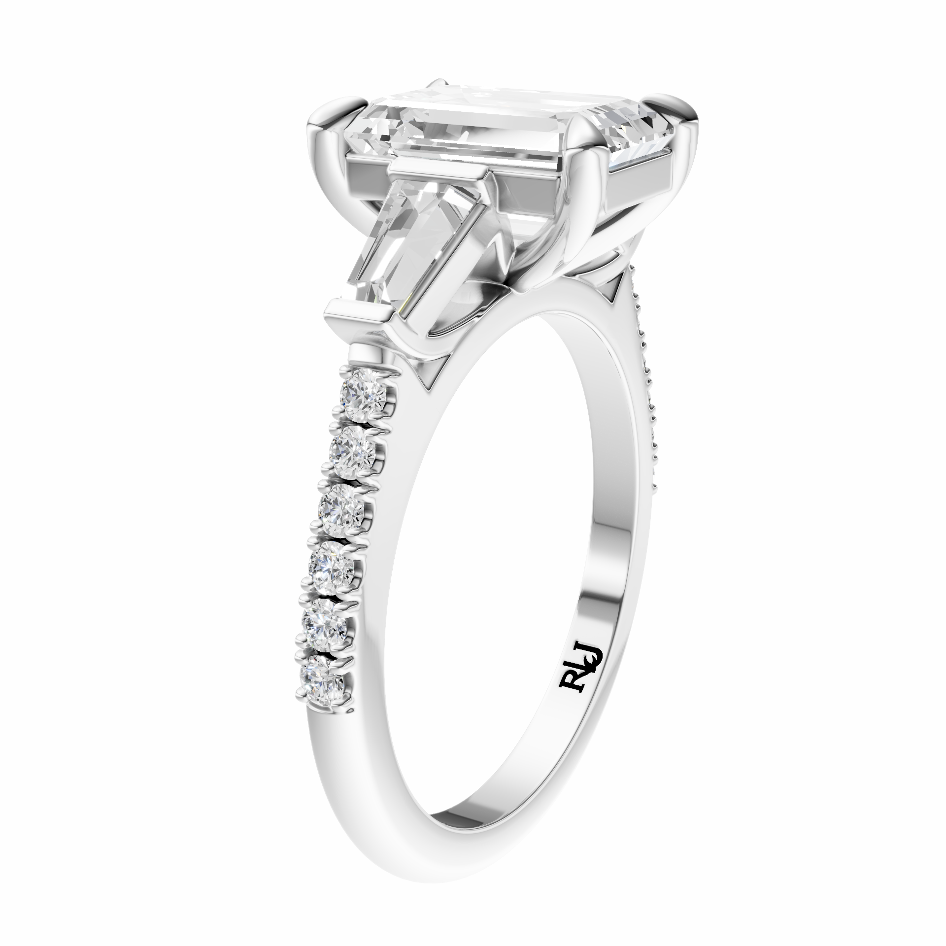 Emerald Accented Three Stone Tapered Baguettes Setting