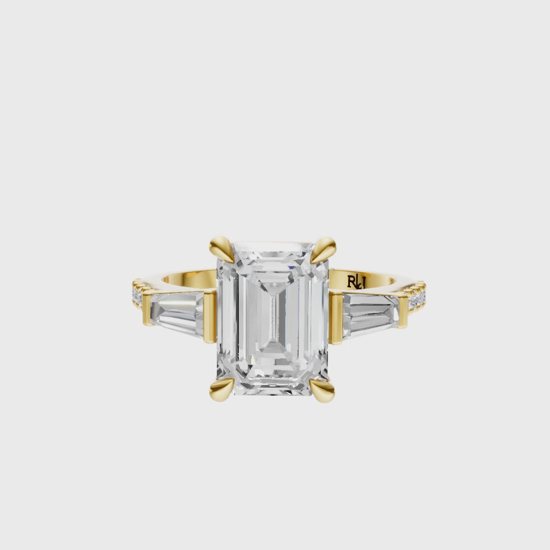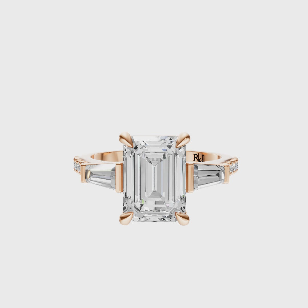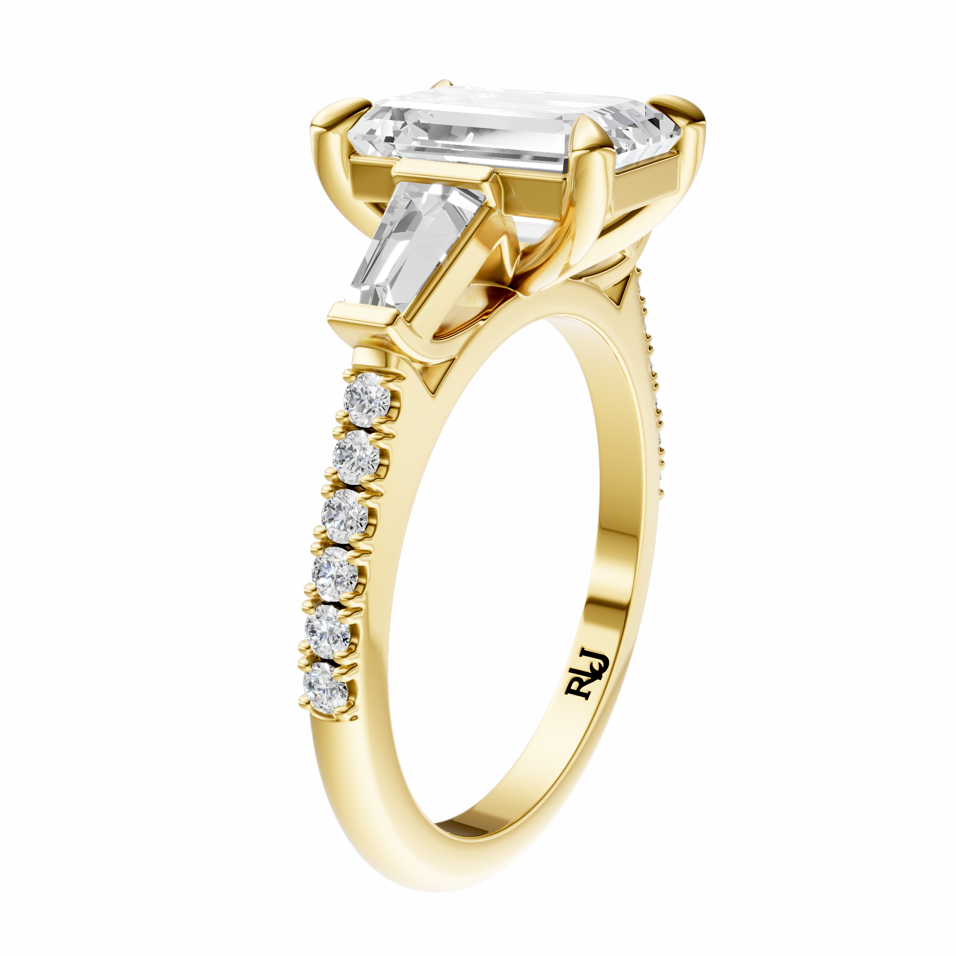Emerald Accented Three Stone Tapered Baguettes Setting