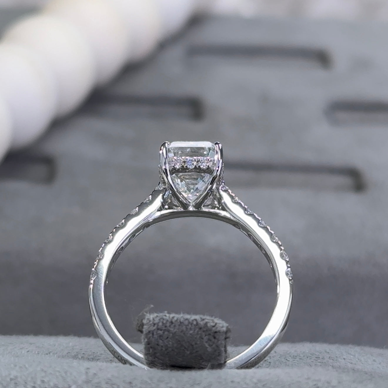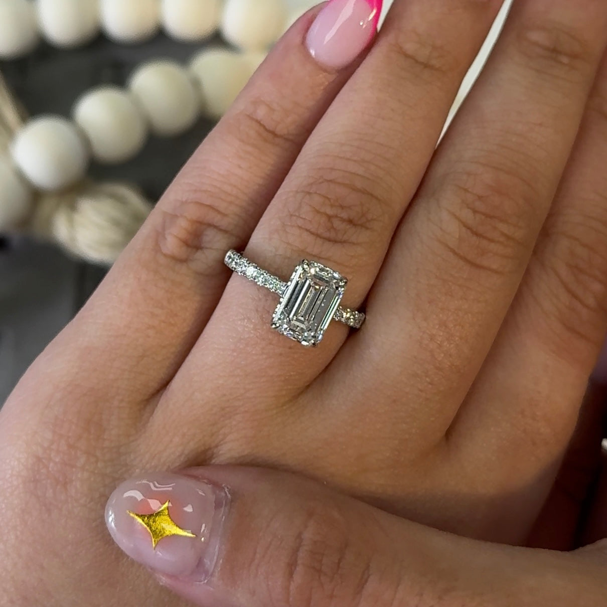 3.01 Carat Emerald Lab Diamond Hidden Halo Traditional Cathedral Ring