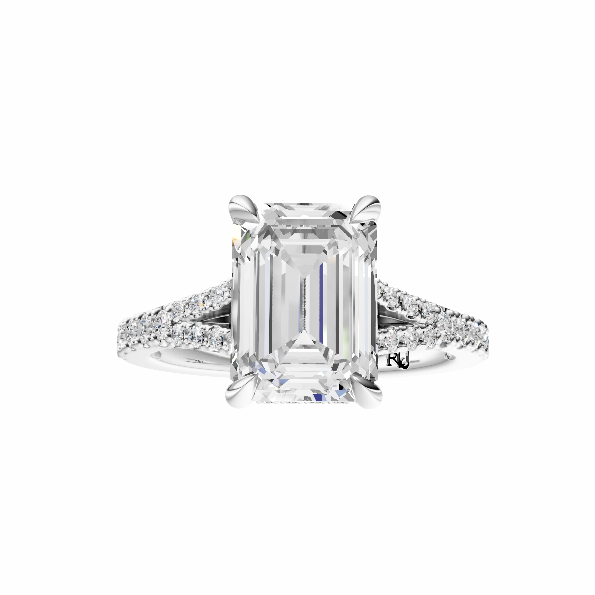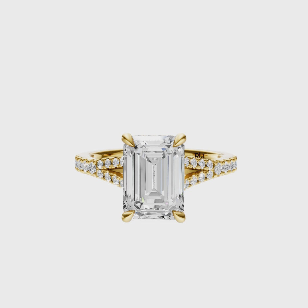Emerald Traditional Split-Shank Cathedral Hidden Halo Setting
