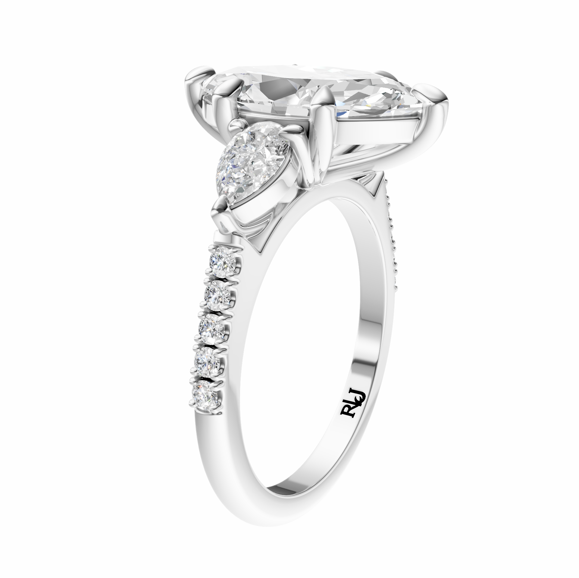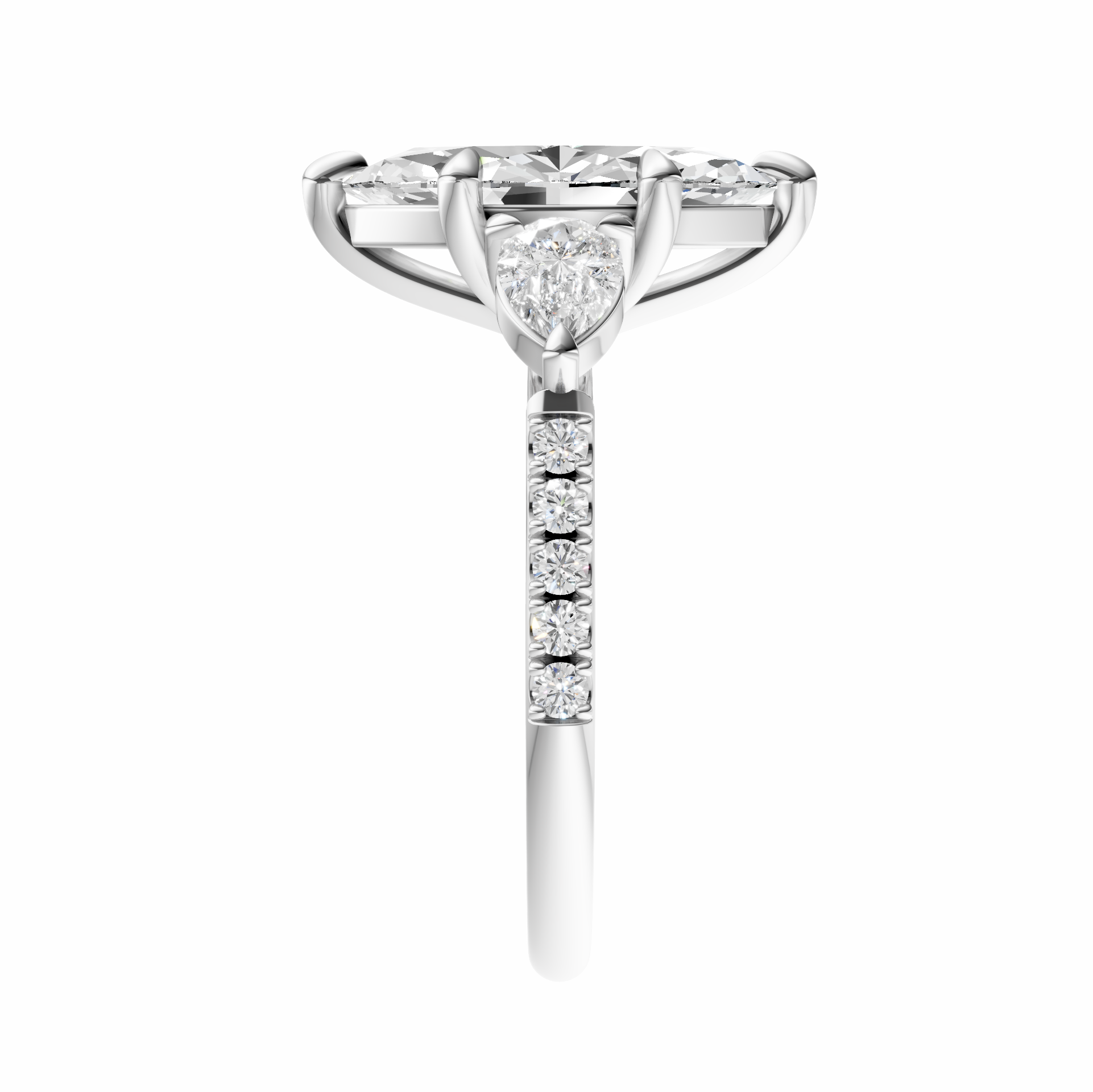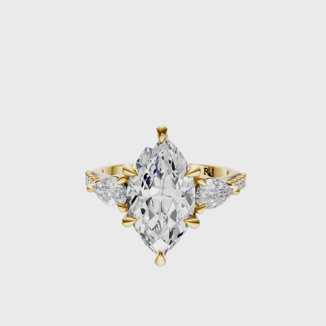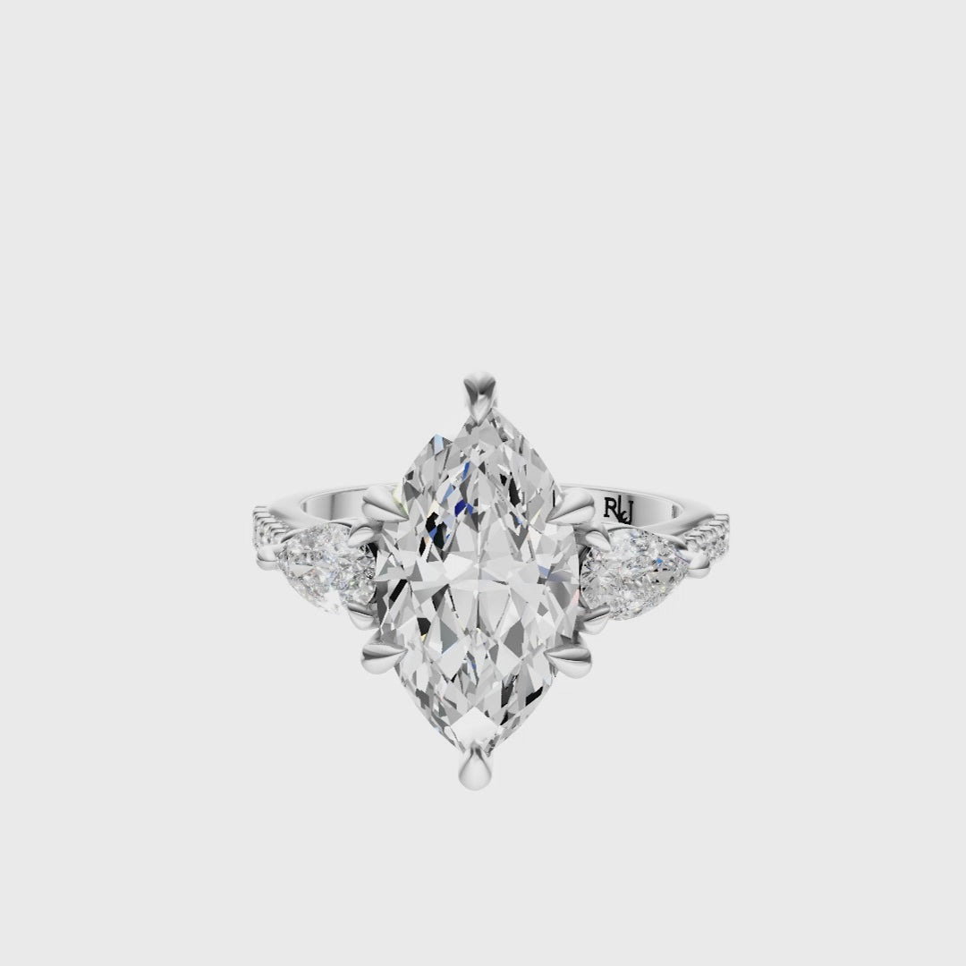 Marquise Accented Three Stone Pear Setting