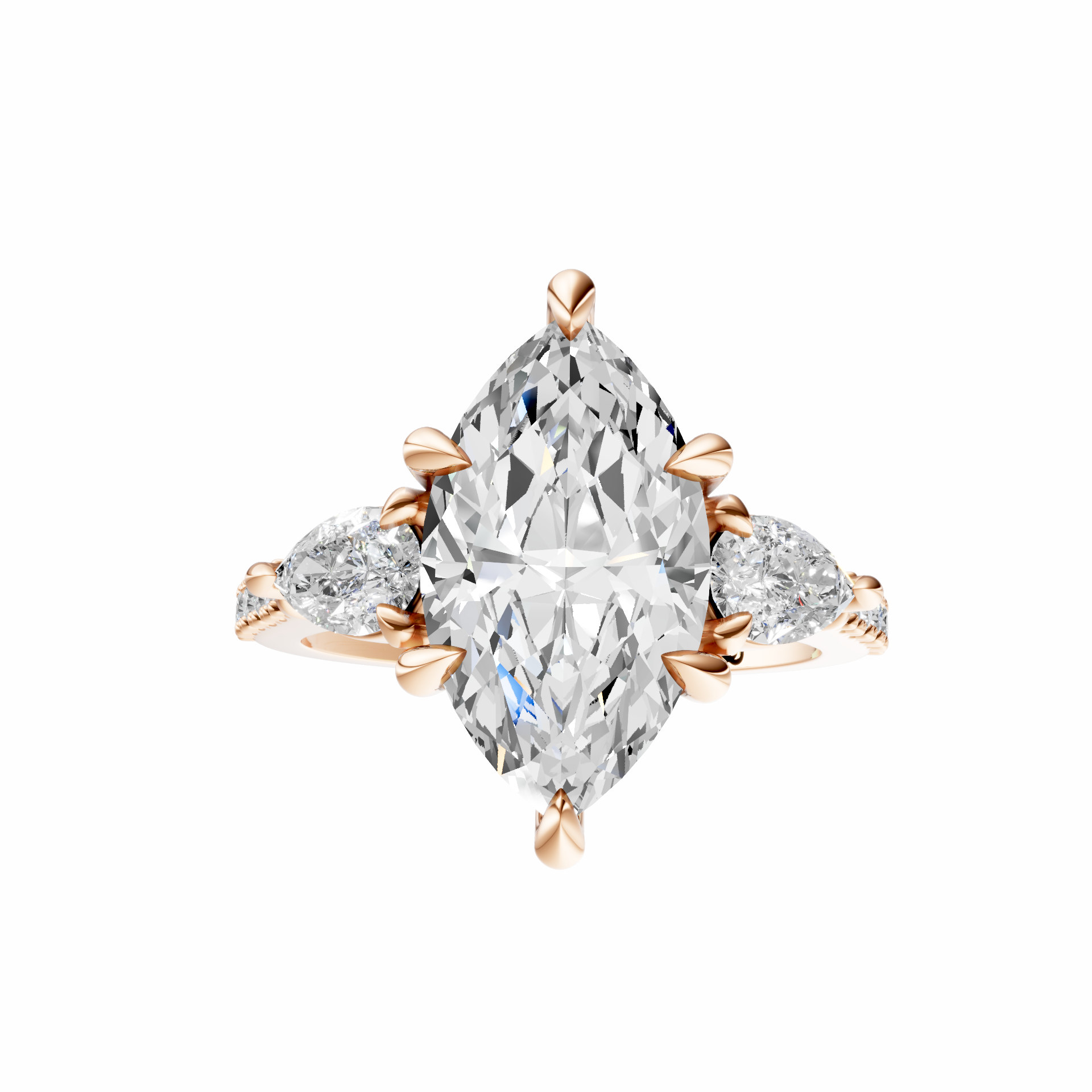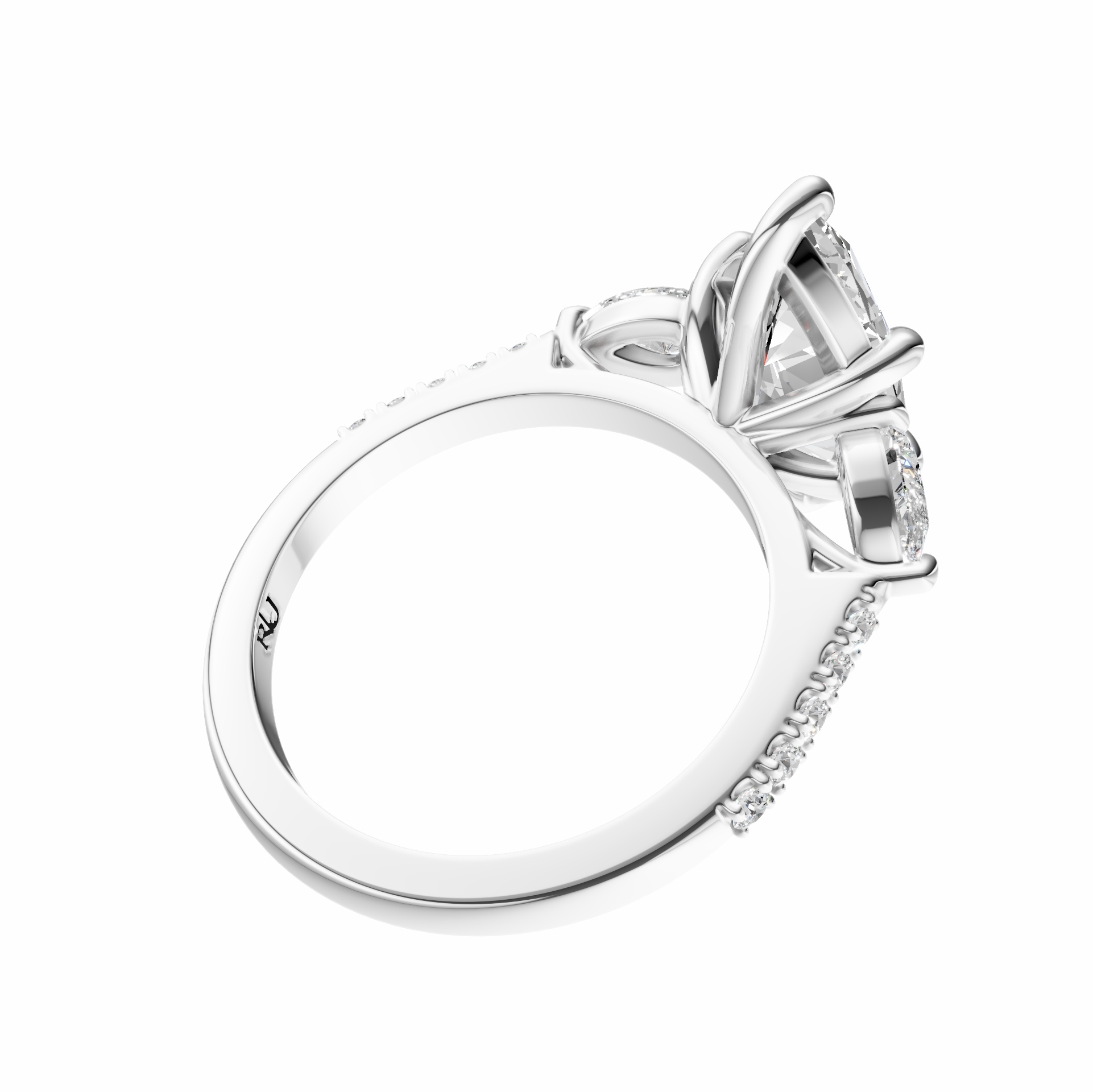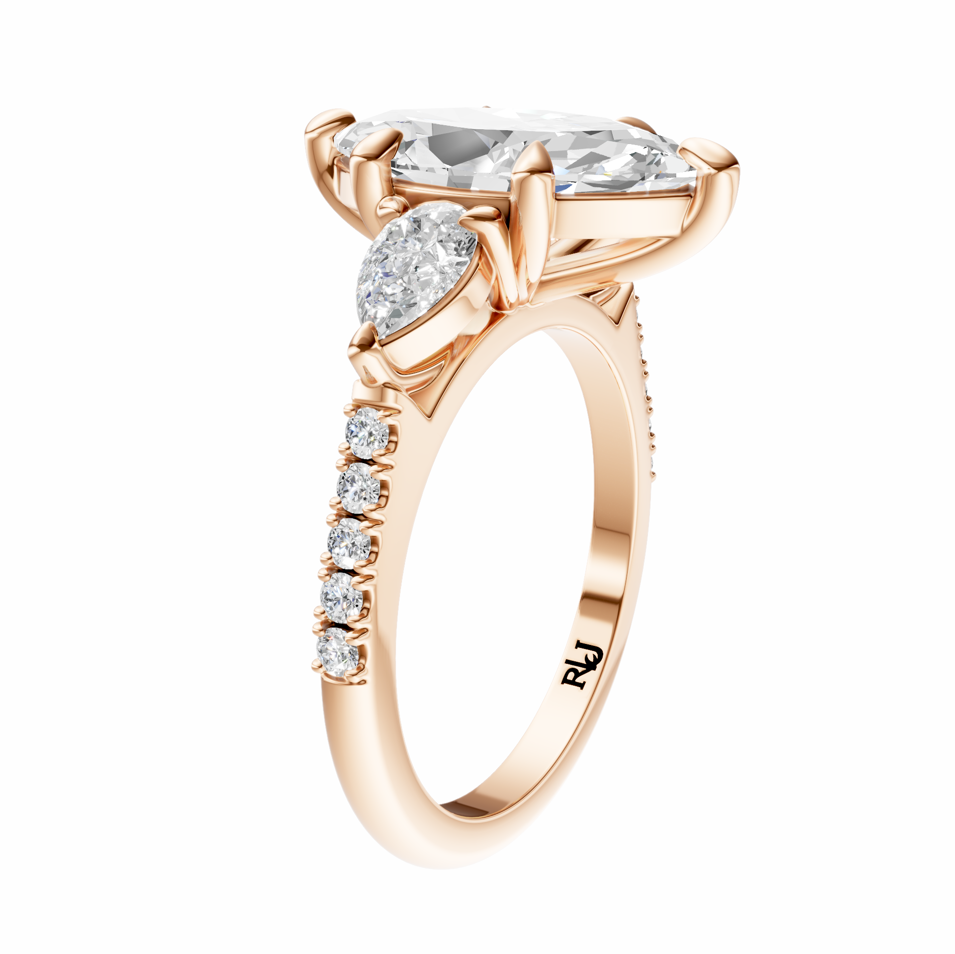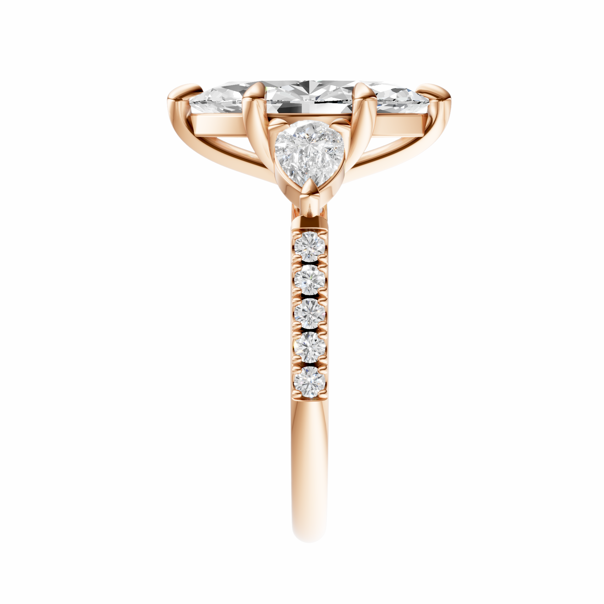Marquise Accented Three Stone Pear Setting
