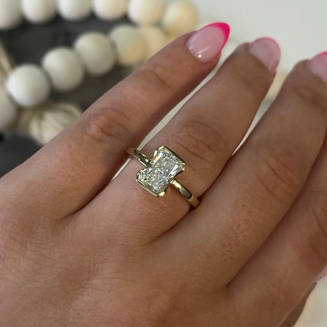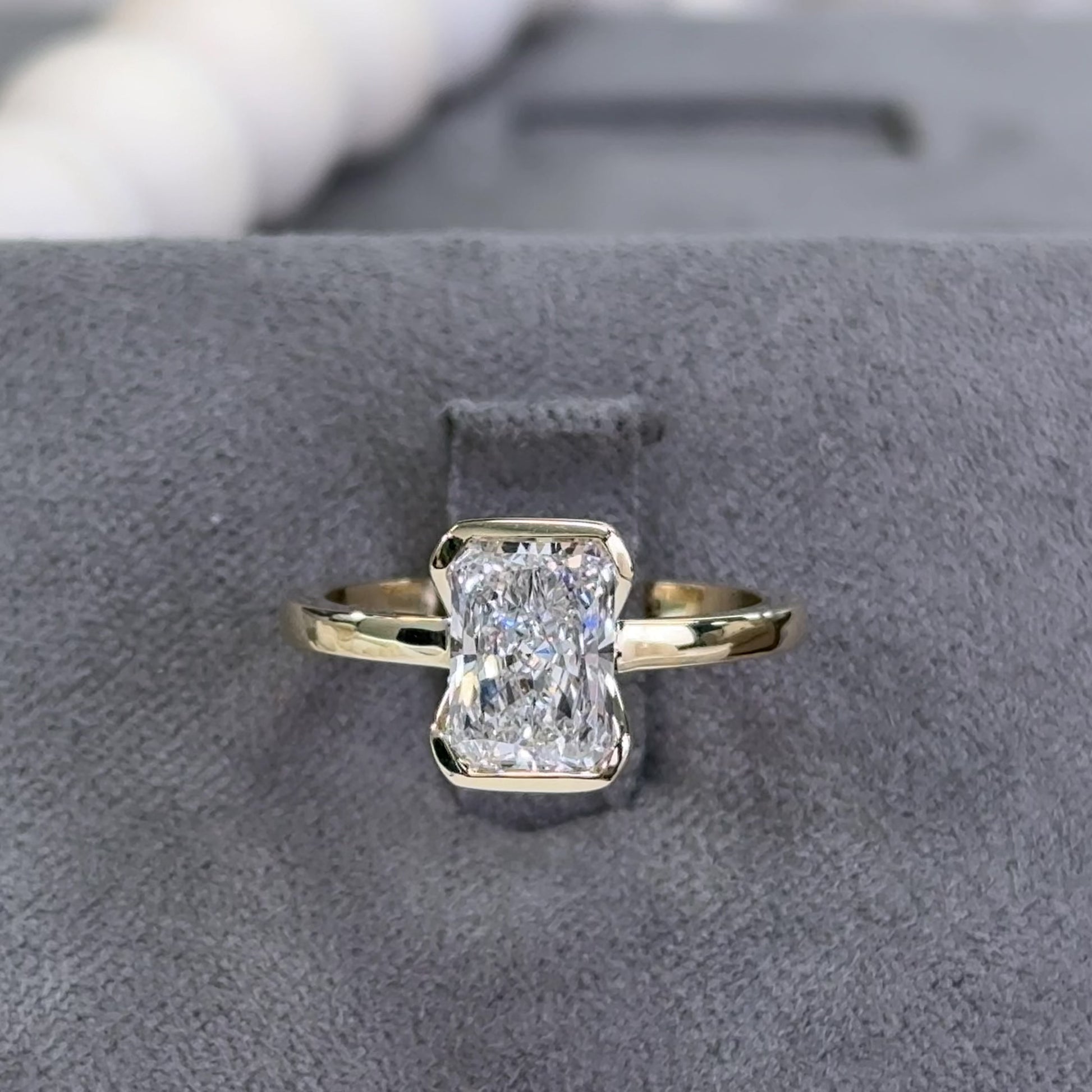 2.01 Carat Radiant Lab Diamond Half Bezel Solitaire Ring