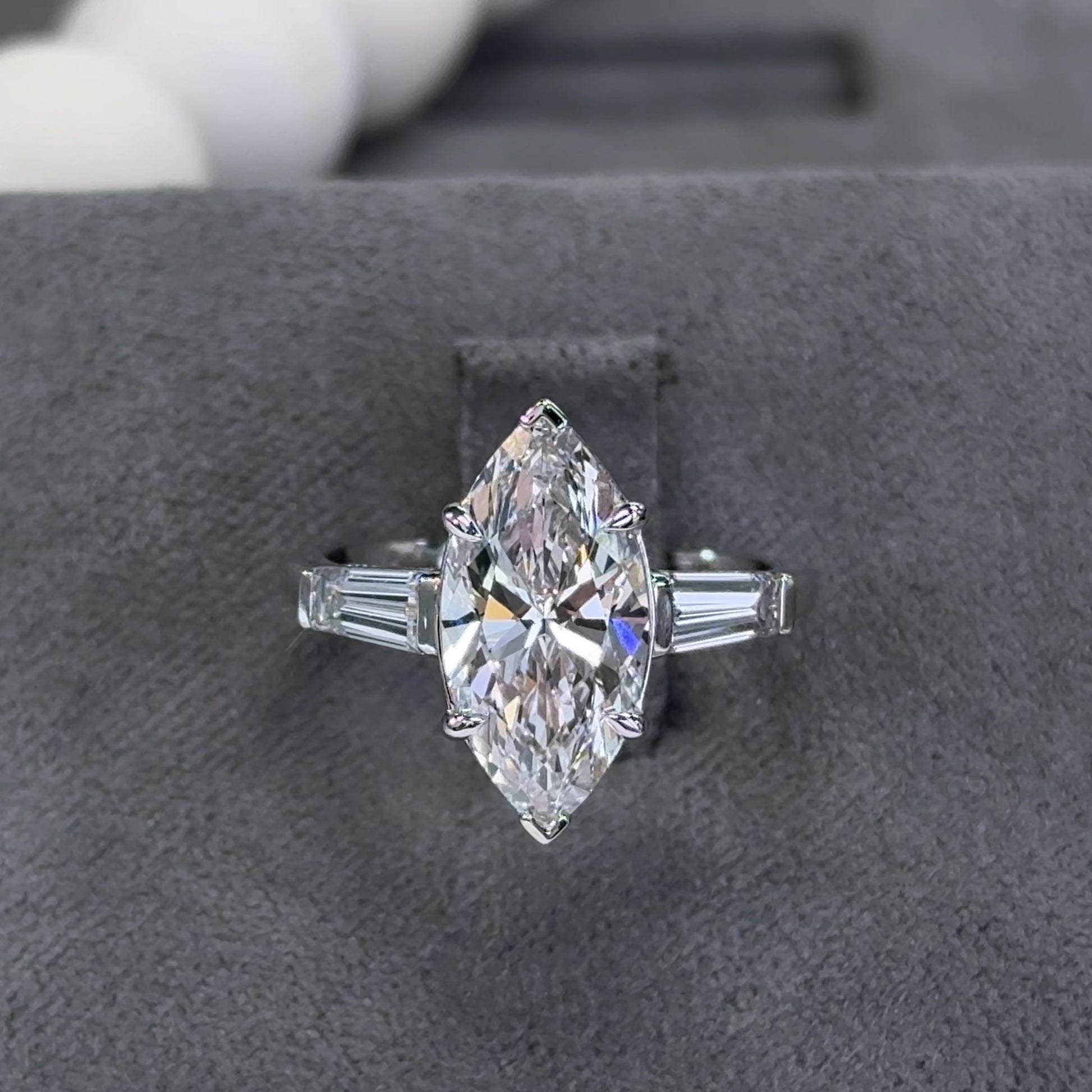 3.03 Carat Marquise Three-Stone Tapered Baguettes Lab Diamond Ring